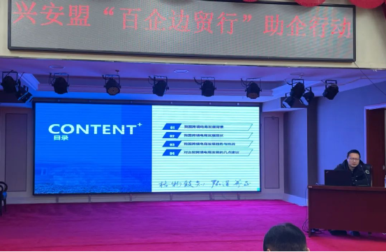 专题研讨会环节同样亮点纷呈,商务部国际贸易经济合作研究院电子商务专家洪勇围绕“跨境电商赋能边贸新机遇”主题,为企业分享跨境电商的前沿趋势和创新思路,助力企业把握跨境电商发展契机,拓展国际市场。内蒙古财经大学教授李瑞峰则以“口岸经济与中蒙俄协同发展”为主题,深入剖析区域经济合作的潜力与方向,为企业规划发展战略提供了重要参考。此外,兴安盟商务口岸局还对相关外经贸政策进行了详细解读,帮助企业用好用足政策红利。